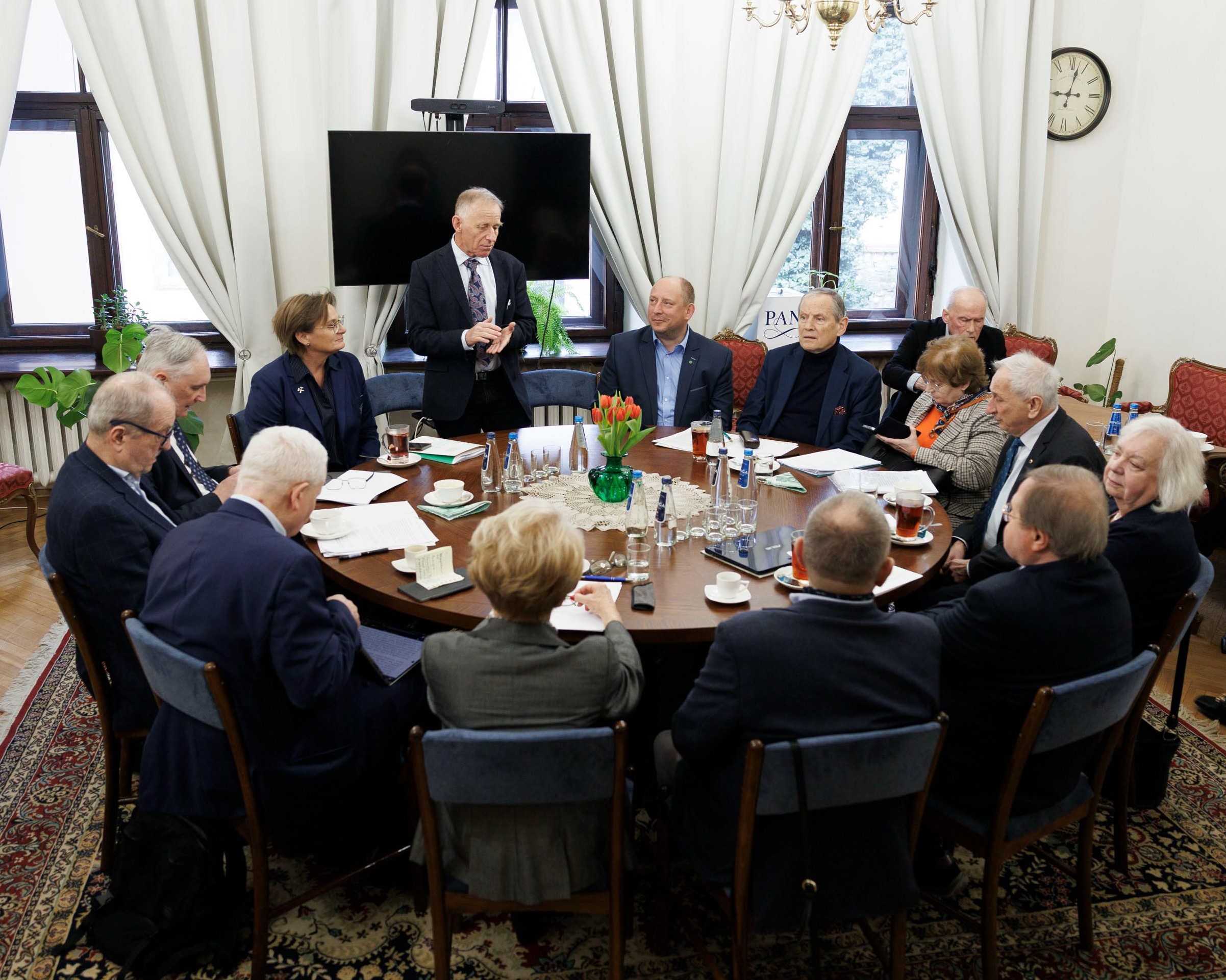 po obradach Prezydium PAN odbyło się spotkanie władz Polskiej Akademii Nauk z krakowskim środowiskiem Akademii. W wydarzeniu uczestniczyli członkowie PAN Oddziału w Krakowie oraz dyrektorzy instytutów PAN działających na terenie miasta. Prezes Oddziału, Karol Życzkowski, powitał gości przybyłych zarówno z Krakowa, jak i z innych części Polski. Następnie głos zabrał Prezes PAN, Marek Konarzewski. Podczas spotkania poruszono ważne zagadnienia dotyczące: bieżących wyzwań związanych z funkcjonowaniem jednostek, kierunków rozwoju badań naukowych oraz współpracy z władzami Akademii. Wydarzenie stanowiło platformę do bezpośredniej wymiany opinii i doświadczeń oraz omówienia istotnych kwestii organizacyjnych i systemowych związanych z działalnością PAN w regionie.